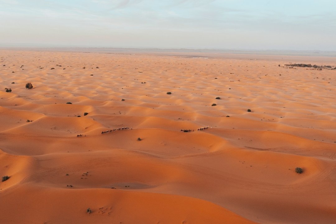 Afterward, arrive in the Merzouga desert and start an experience that everyone should do at least once in a lifetime, riding the camels to the heart of the desert, watching a vibrant sunset from one of the highest dunes, and enjoying the tranquility and quietness amidst of the desert.