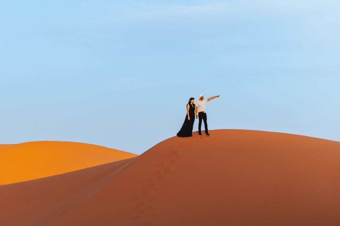 - For the Merzouga Sahara Desert, it is unique to get white dress for pictures with the stunning orange dunes